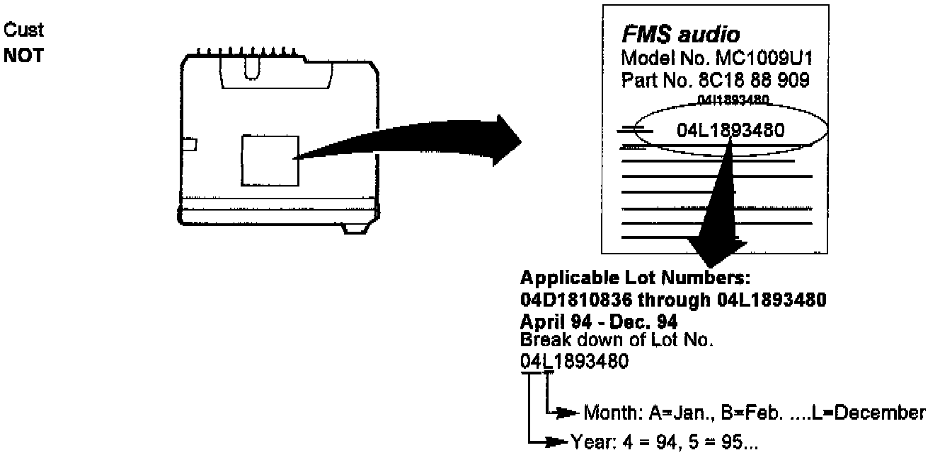 There are no part number changes. Refer to the "Lot" number to identify new and old audio components.