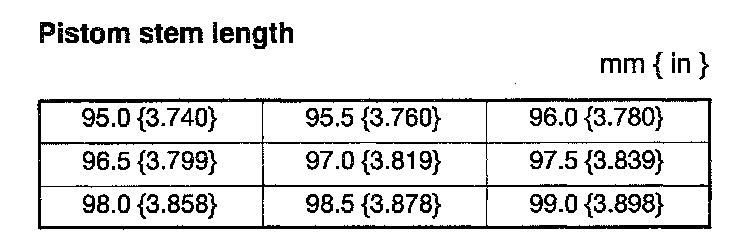7) If not within the specification, adjust it by selecting the proper piston stem from below.