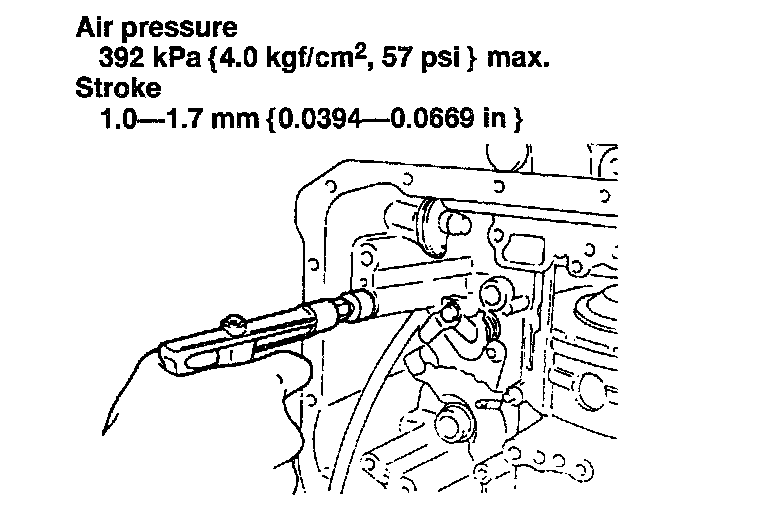 2) Apply compressed air through the fluid passage with a rubber-tipped air nozzle as shown and measure the piston stem stroke.