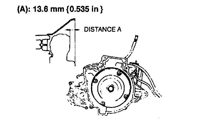 43. To ensure that the torque converter is installed accurately, measure distance A between the end of the torque converter and the end of the converter housing.