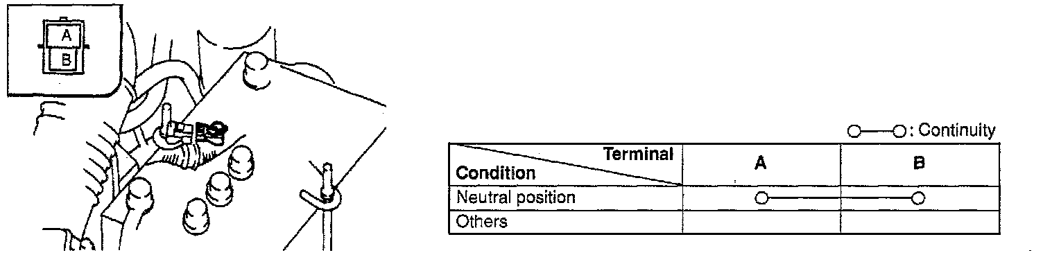 2. Check for continuity between terminals of the [1][2]neutral switch by using an ohmmeter.