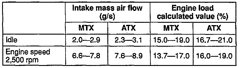 Note: The scan tool shows the mass airflow rate and load value.