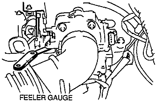 5. Insert a 0.50 mm (0.020 in) feeler gauge between the throttle adjusting screw (TAS) and the throttle lever. Verify that there is no continuity.