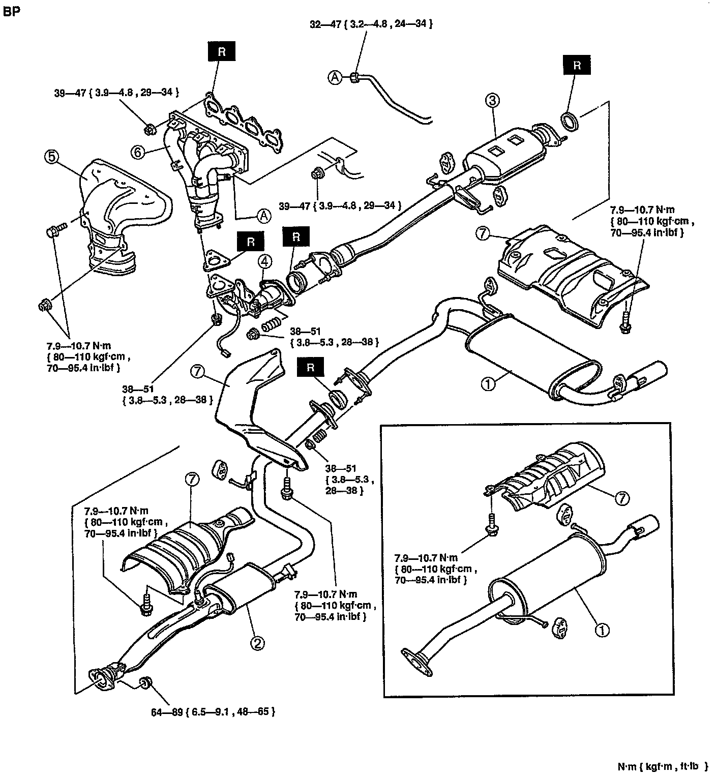 3. Check for correct alignment at "5" (front pipe and bracket) and at "2" (block and bracket).