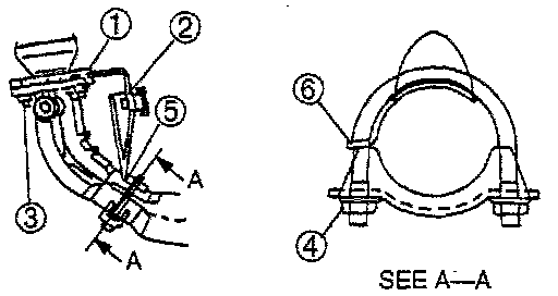 4. Check for correct alignment at "6" (hanger bracket and U bolt) then tighten nut "4".