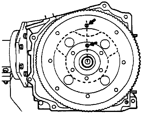 8. Install the driveplate on the counter weight as shown in Fig. 51 and tighten the attaching bolts.