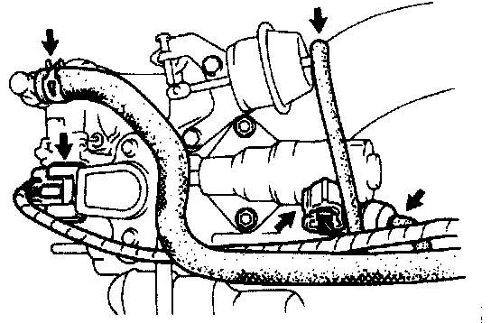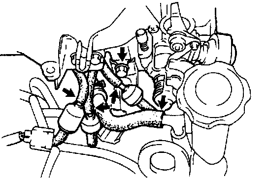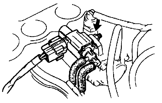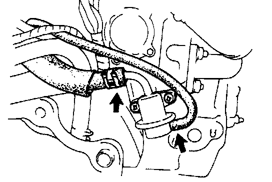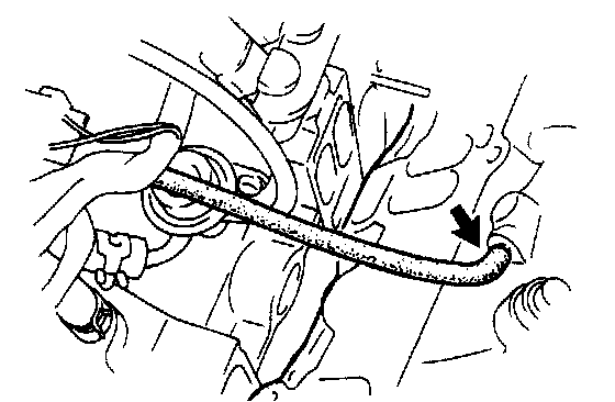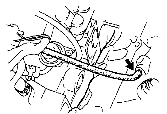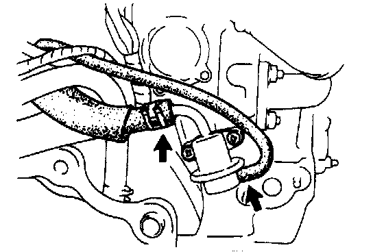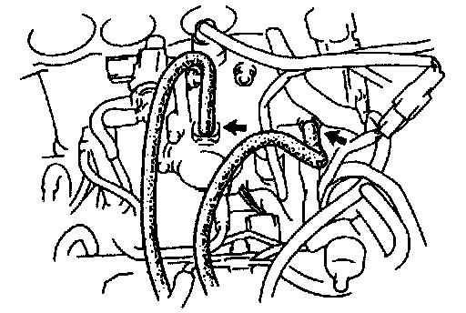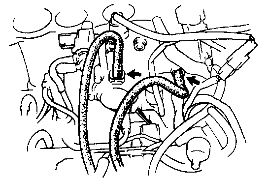 2. Disconnect the fuel hose and vacuum hose shown in the image.