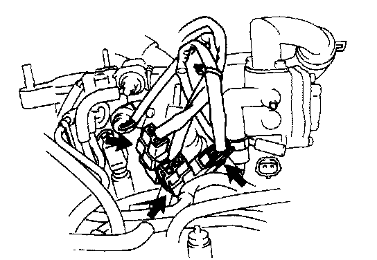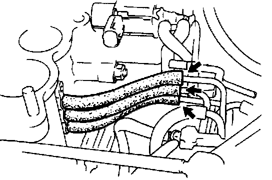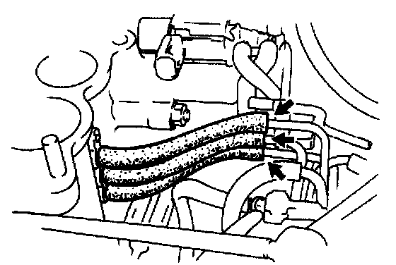 3. Disconnect the vacuum hoses and blowby hose shown in the image.