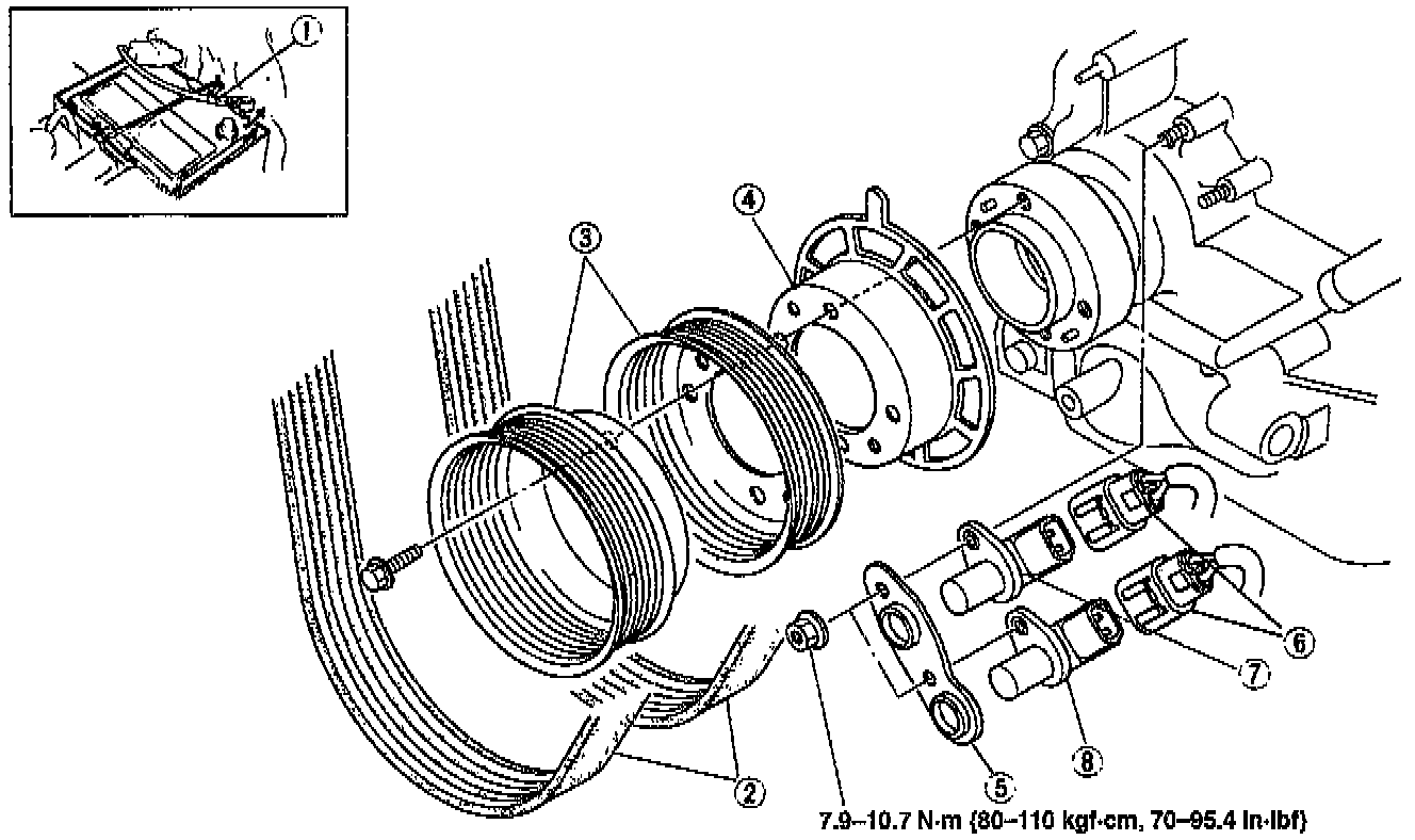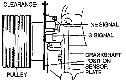 Measure the crankshaft position sensor to crankshaft position sensor plate clearance by using feeler gauge.