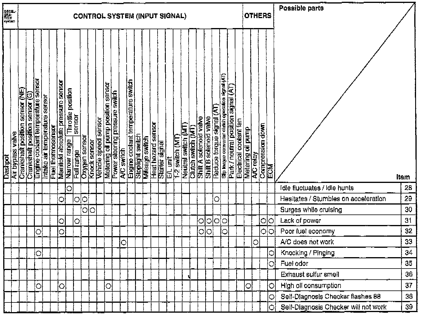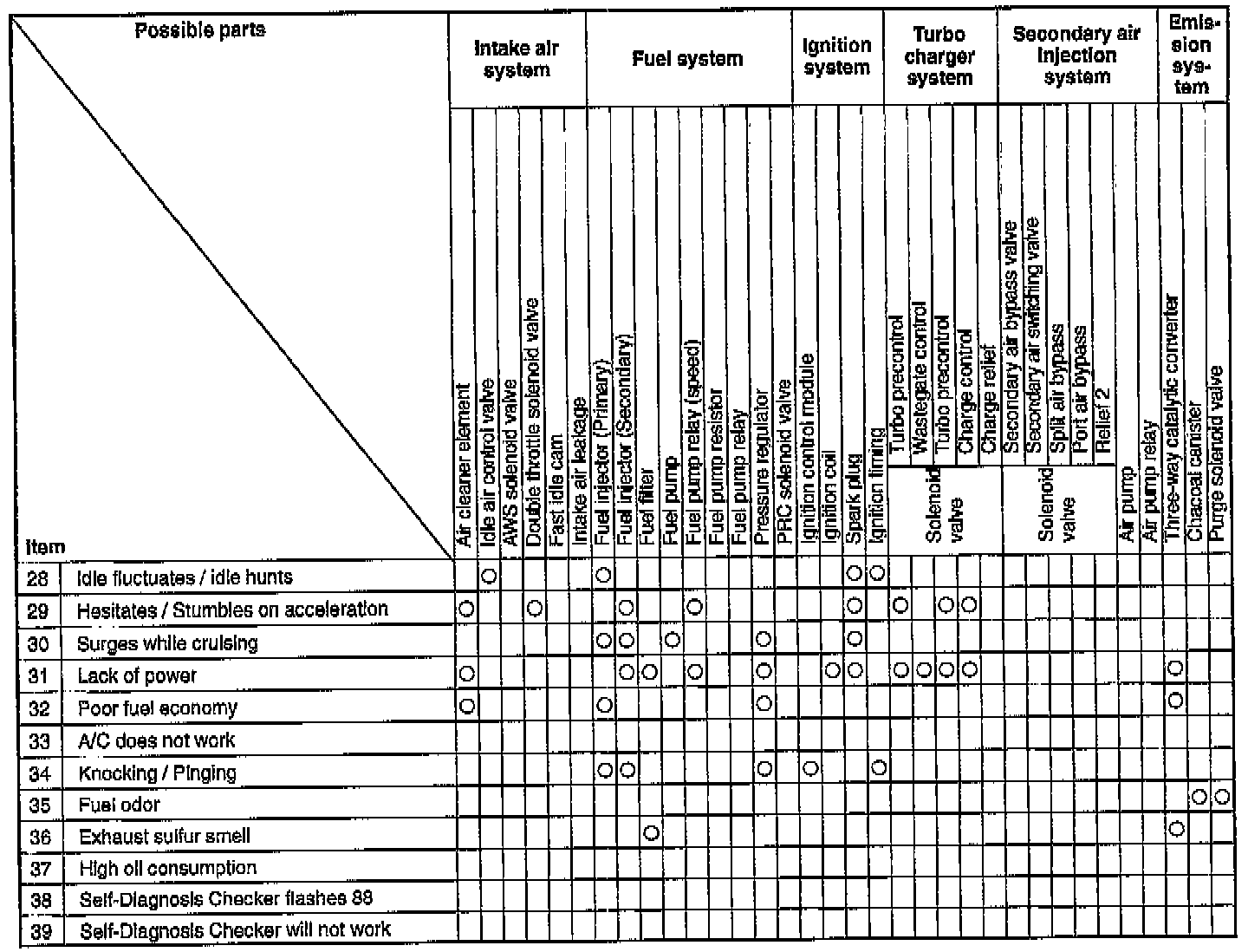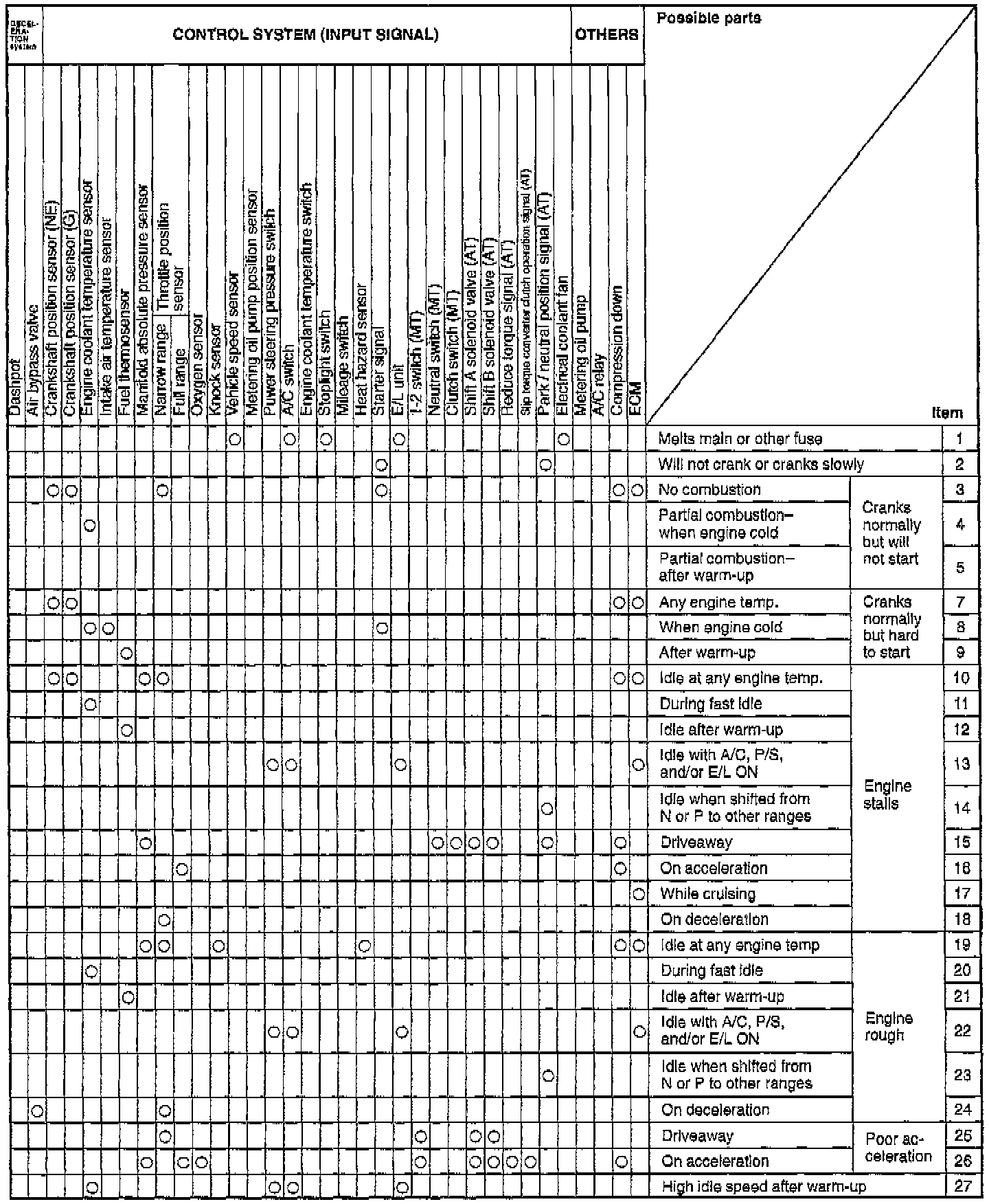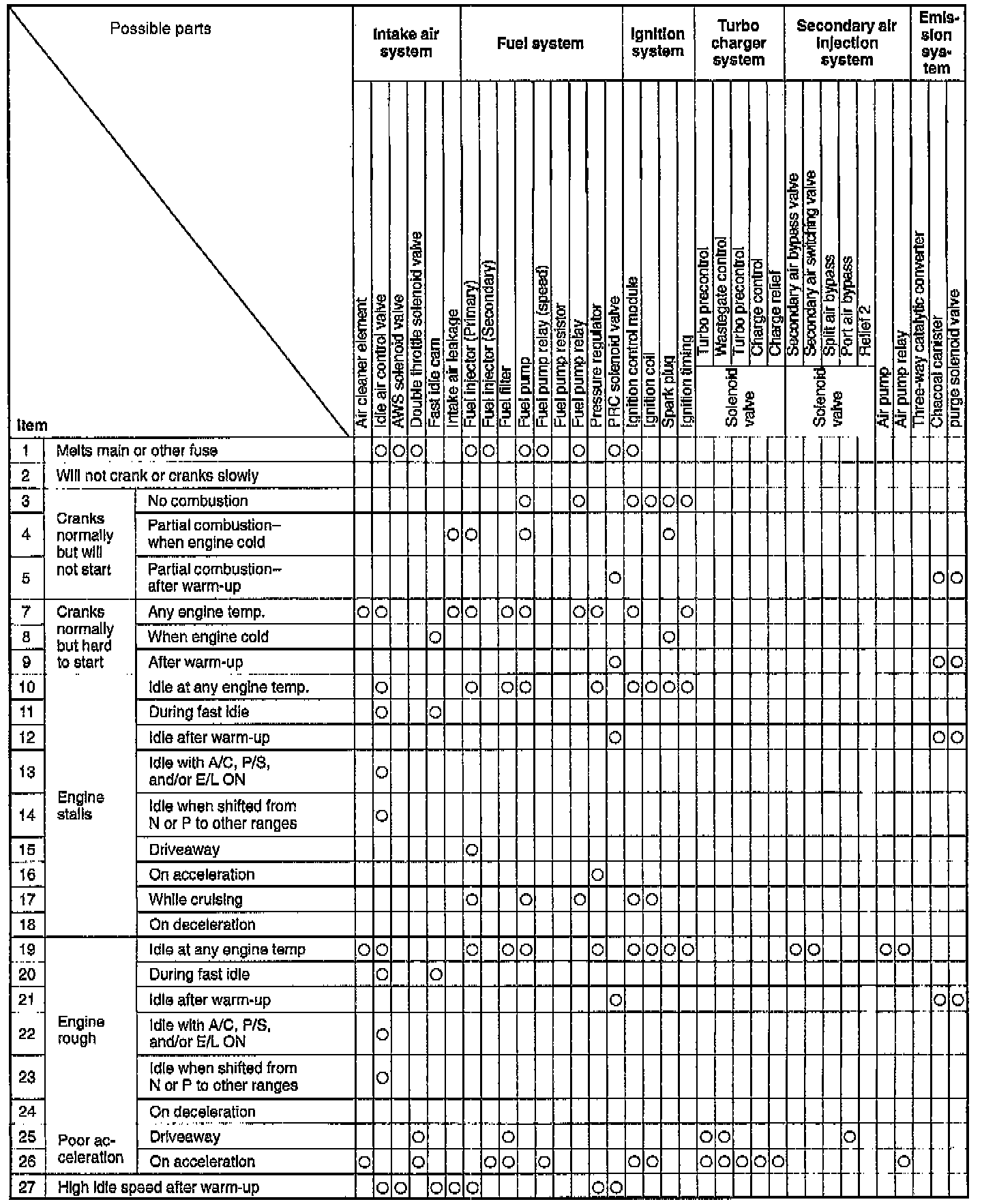 These Quick Diagnosis Charts show the relationship between troubleshooting items and inspection points.