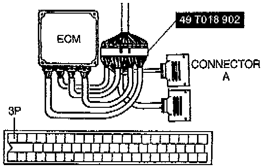 1. Connect the SST (Special Service Tool) (Engine Signal Monitor Adapter Harness) to the ECM (Engine Control Module) as shown.