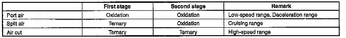 (1) Before the engine is warmed up, when large amounts of CO and HC are created, the three-way catalytic converter is supplied port air and uses both the first and second stages as the oxidation catalyst.
