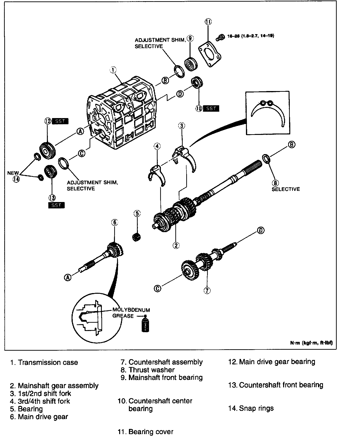 1. Install the correct shim onto the rear of the mainshaft as determined in the transmission case assembly note.