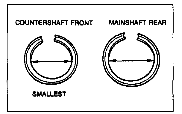 3. Install new snap rings to the main drive gear and countershaft gear. Install the smaller snap ring to the countershaft gear, and the larger one to the main drive gear.