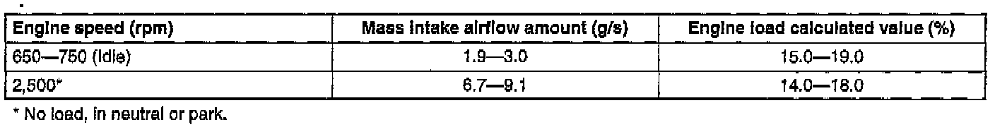 NOTE: The scan tool shows the mass airflow rate and load value.