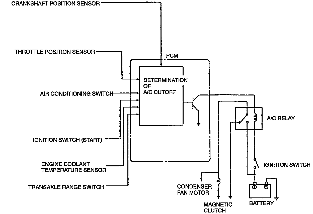 An A/C cutoff system is used to improve idle smoothness just after starting the engine and to improve acceleration performance.