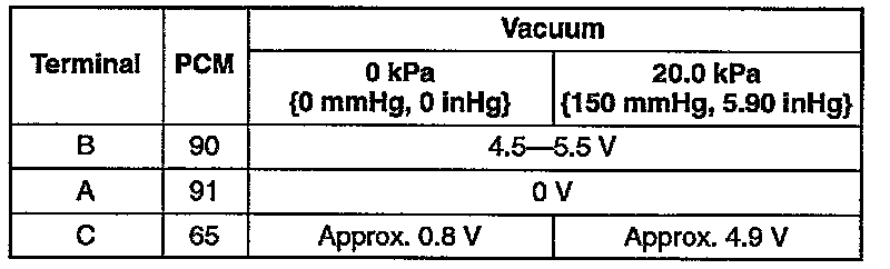 4. If not correct EGR valve position signal voltage, check the wiring harness and 90 terminal of the PCM.