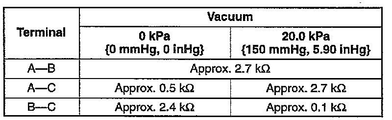 3. Measure the resistance between the terminals as shown while vacuum is applied.