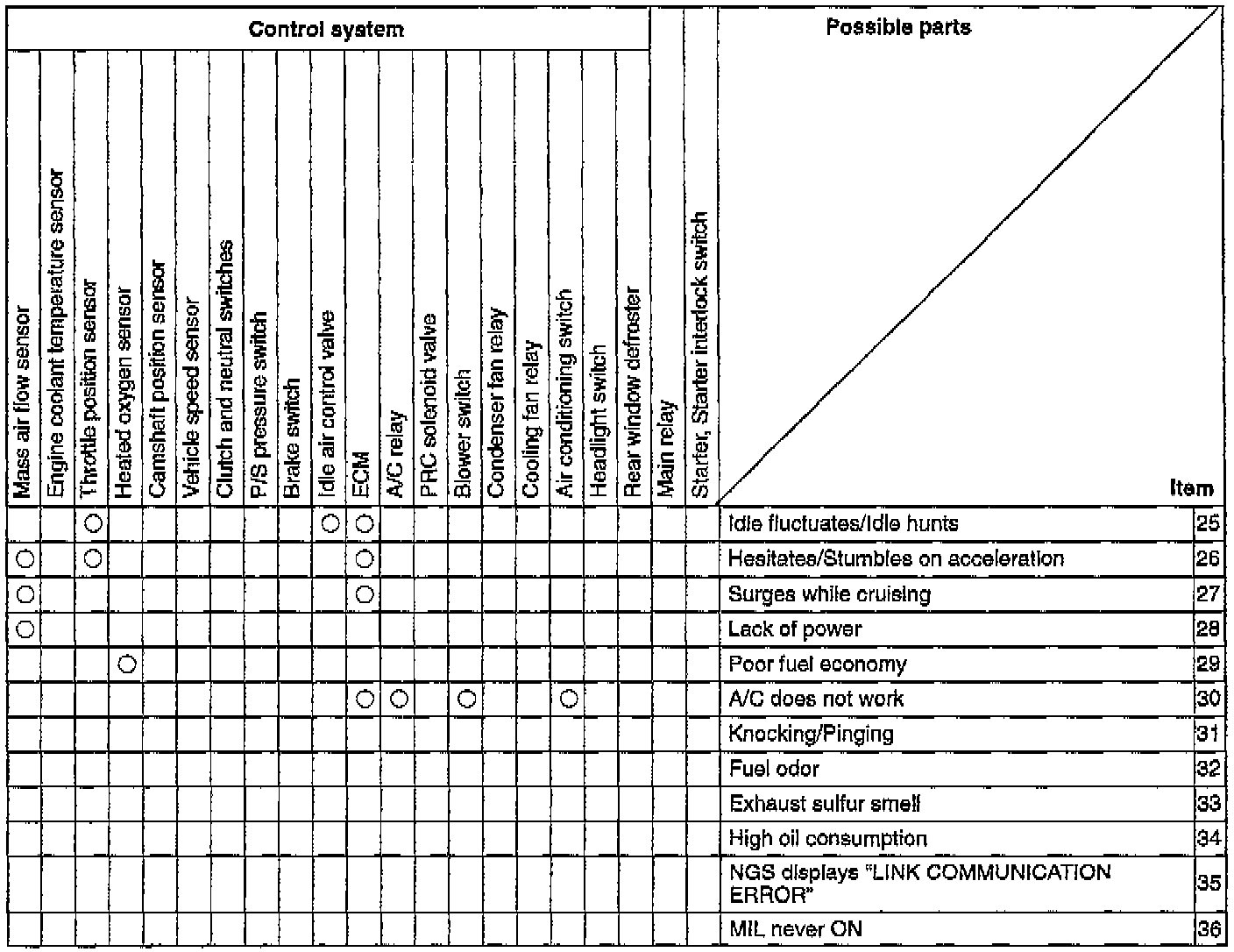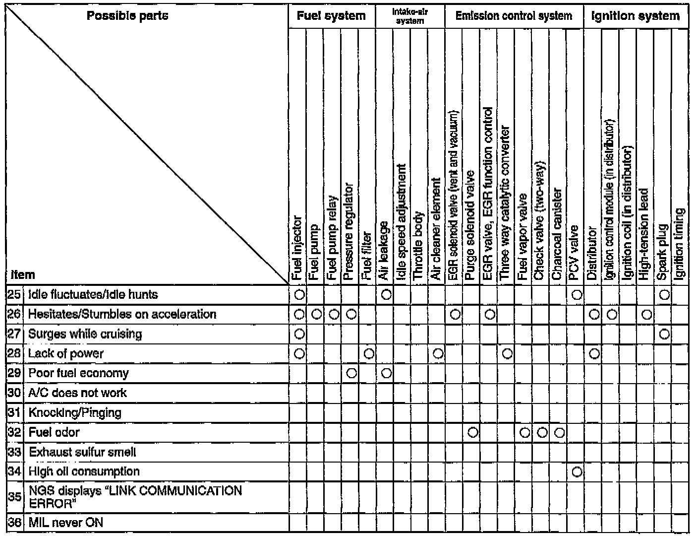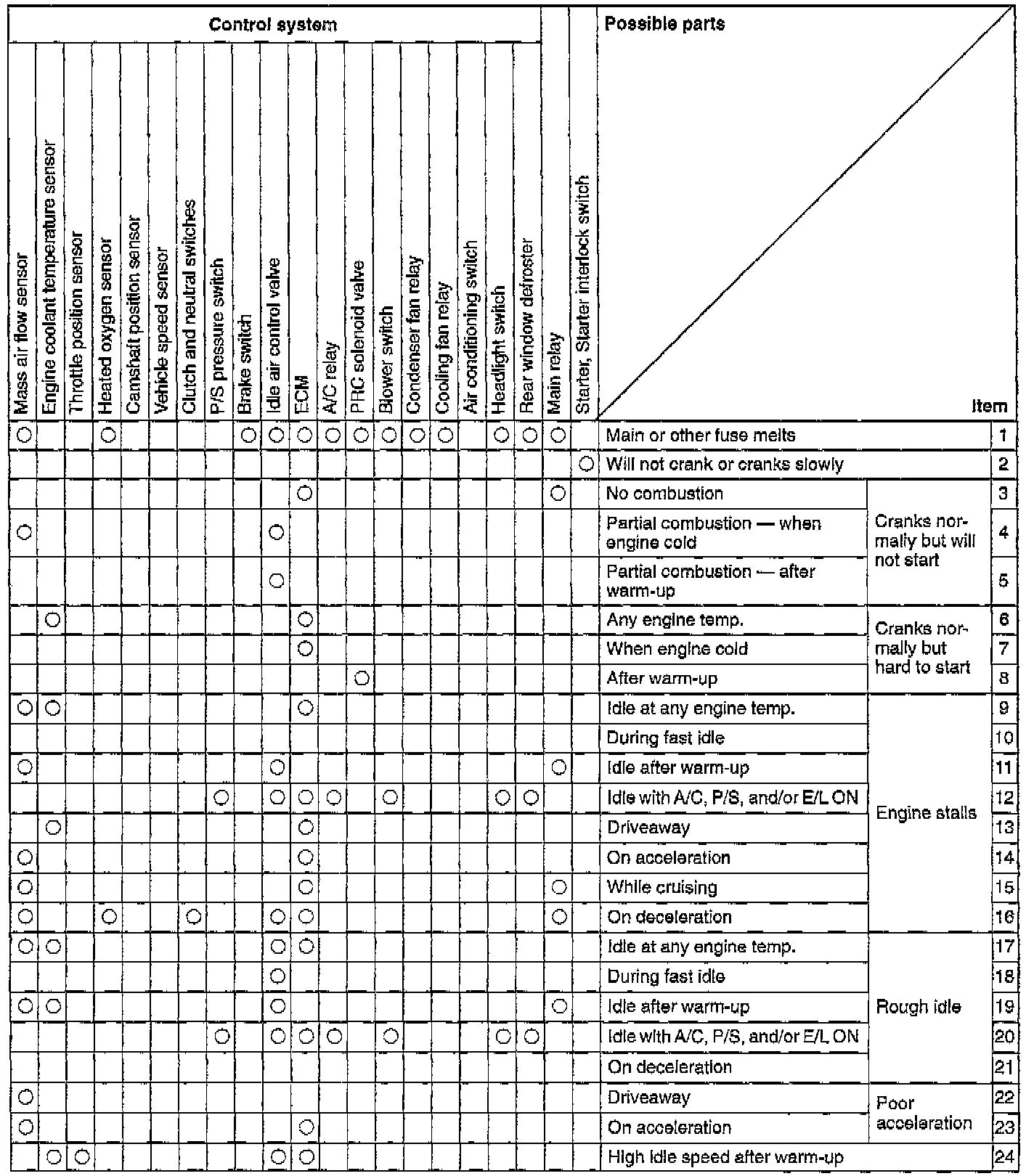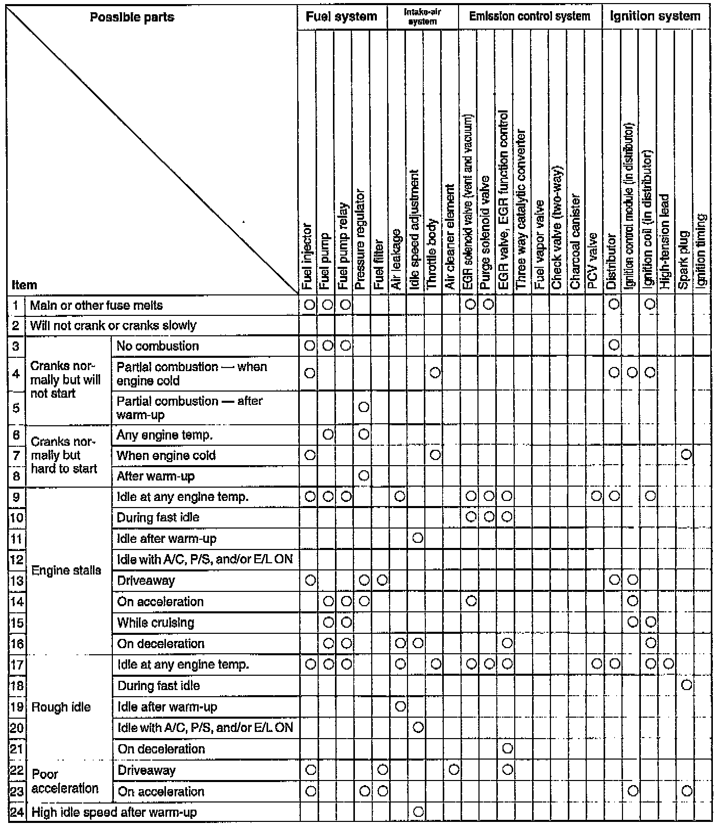 QUICK DIAGNOSIS CHARTSNOTE: Quick Diagnosis Charts show the relationship between troubleshooting items and inspection points.