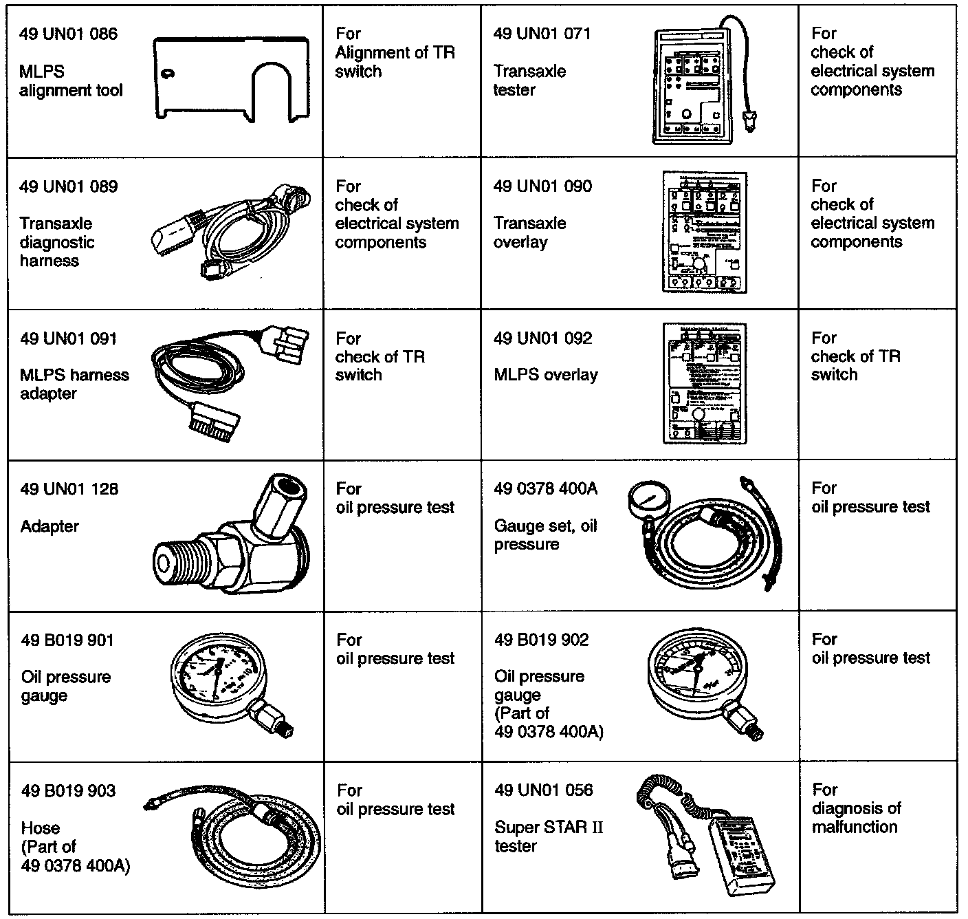 The transaxle tester allows a technician to operate the electrical portion of the transaxle independent of the vehicle electronics. The transaxle tester usage is divided into five steps.
