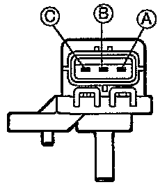 7. Apply vacuum or pressure to the EGR boost sensor by using a vacuum pump. Measure the voltage between terminals A and B by using a voltmeter, from the rear side of the connector.