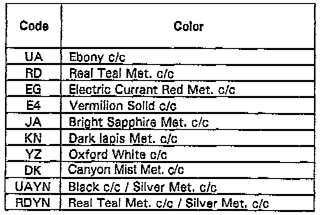 Exterior Paint Codes