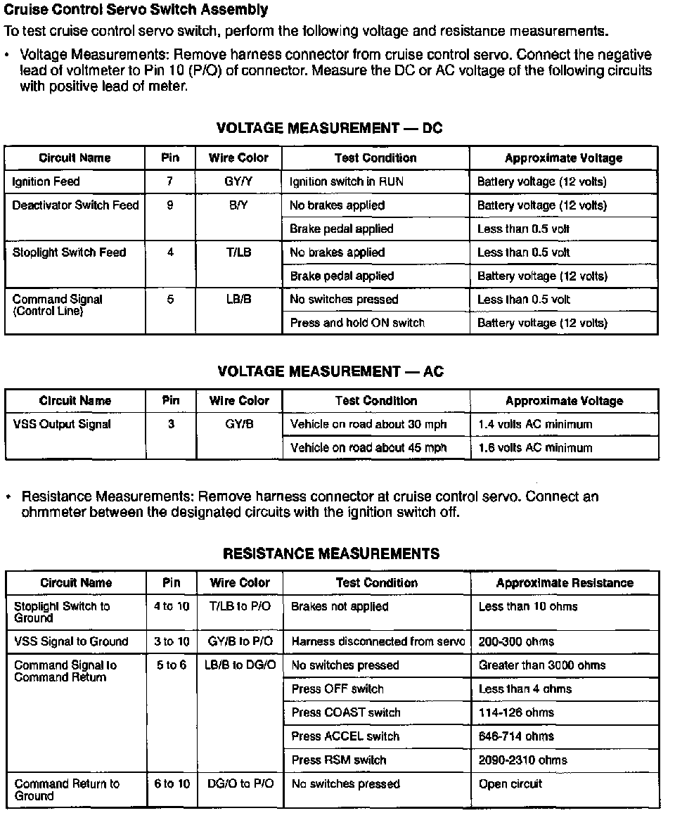Fig. 58 Cruise Control Servo Switch Test: