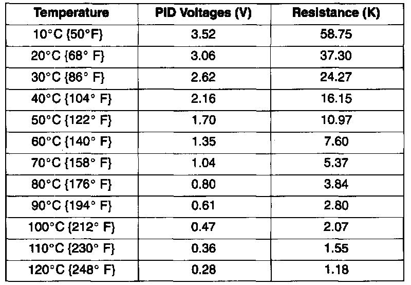 NOTE: Voltage values were calculated for VREF = 5.0 volts. These values may vary 15 percent due to sensor and VREF variations.