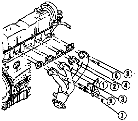 5. Install the remaining bolts and studs and tighten in the sequence shown in two steps.