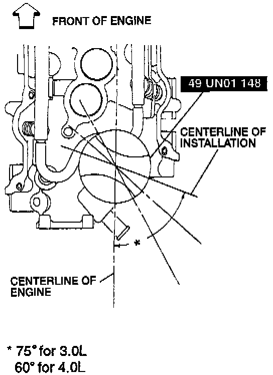 5. Insert the synchronizer assembly (with SST) into the block. The SST should be aimed approximately 75 degrees counterclockwise off the centerline of the engine.