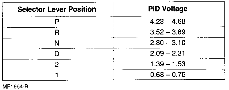 Transmission Range To PID Voltage Table: