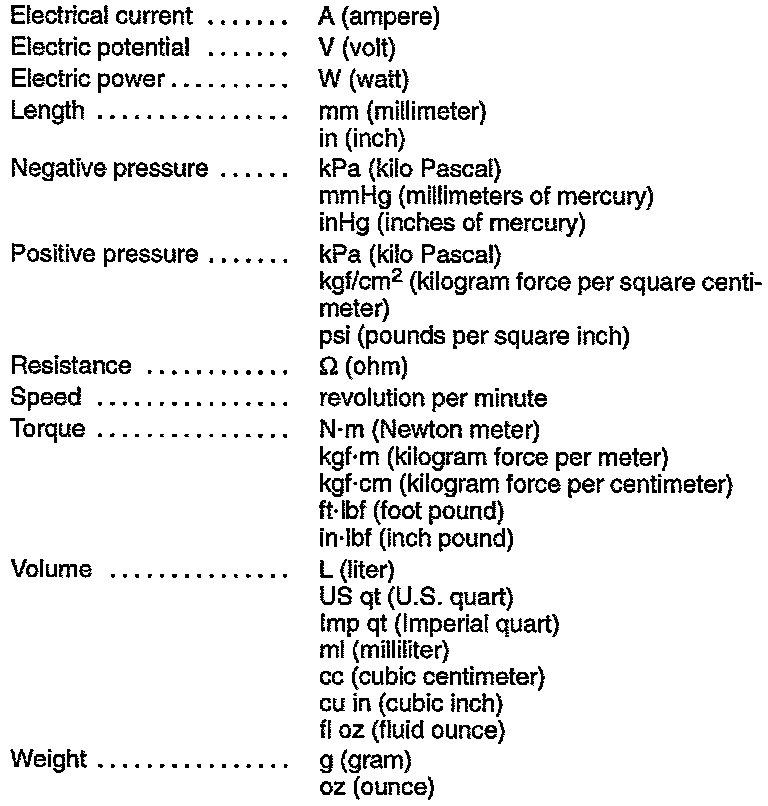 All numerical values in this manual are based on SI units. Numbers shown in conventional units are converted from these values.