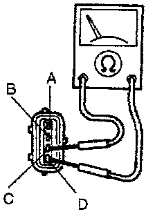5. Adjust the continuity between the closed throttle position switch terminals C and D by using an ohmmeter.