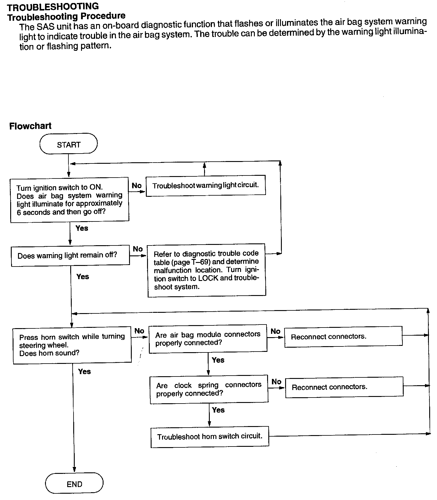 5. Follow the troubleshooting flowchart to verify that the air bag system is operating normally.