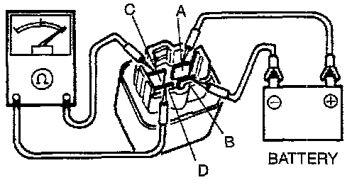 2. Apply battery positive voltage and check continuity between terminals of the relay by using ohmmeter.