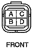 2. Measure the resistance between heated oxygen sensor terminals C and D by using an ohmmeter.