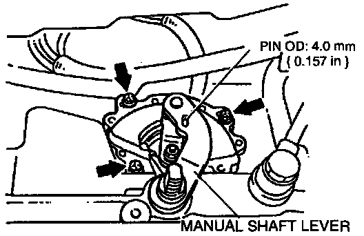 3. Align the holes of the transmission range switch and the manual shaft lever and insert an approx. 4.0 mm (0.157 in) outer diameter pin through the holes.