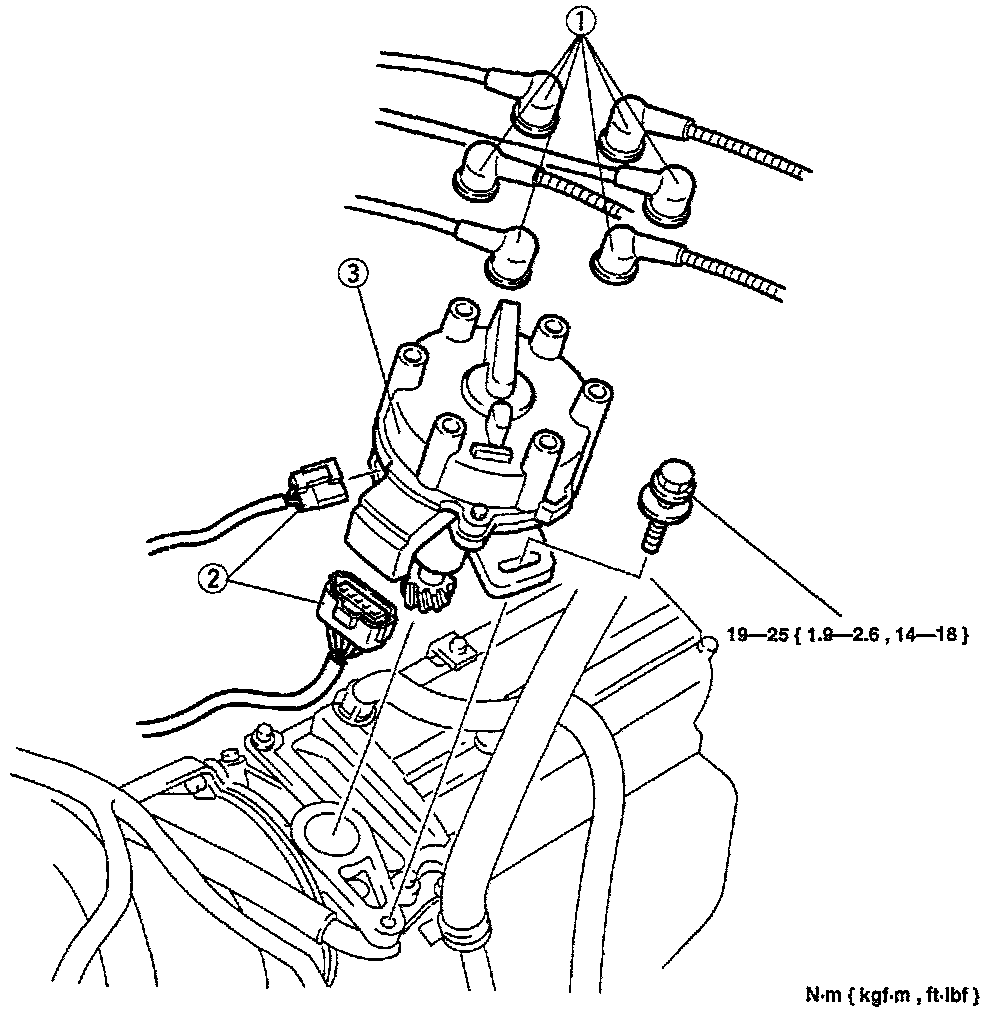 Verify that the No.1 cylinder is at top dead center and align the distributor matching marks. After installing the distributor, adjust the ignition timing.