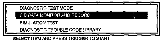 - Select the PID/DATA MONITOR AND RECORD function of the NGS.