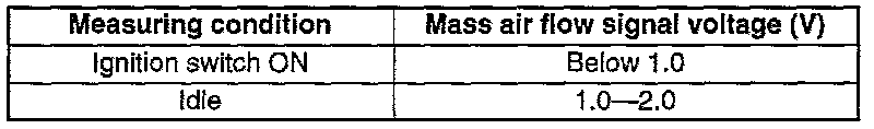 - If not as specified, inspect the harness and connector between the mass air flow sensor and the ECM terminal.
