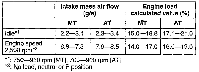 NOTE: The scan tool shows the mass air flow rate and load value.