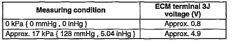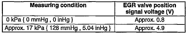 - If not as specified, inspect the harness and connector between the EGR valve position sensor and the ECM terminal.
