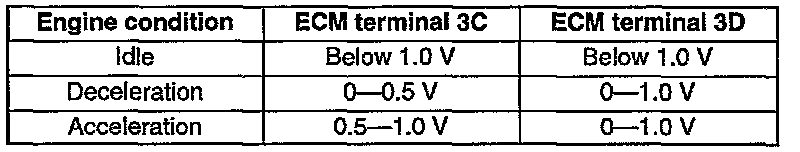 - Adjust the throttle position sensor so that the ECM terminal 3F voltage is as specified.