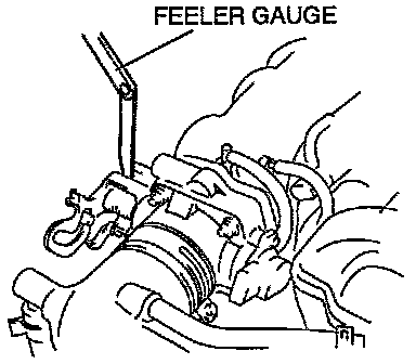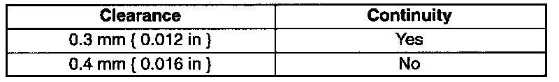 - Insert a 0.4 mm (0.016 in.) feeler gauge between the stopper and the throttle lever.