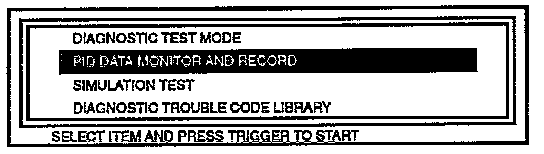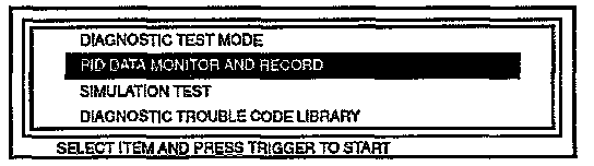 - Select the PID/DATA MONITOR AND RECORD function of the NGS.