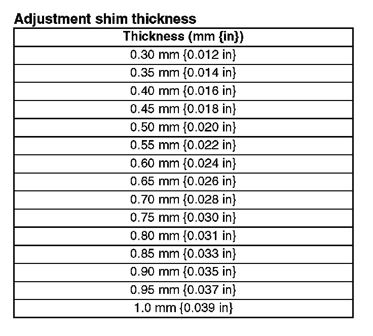 Adjustment shim thickness