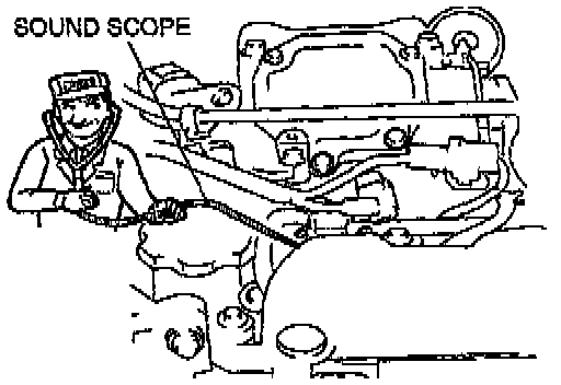 2. Depress the accelerator pedal to the wide open throttle and turn the ignition switch to START. Verify that no injector operating sound is heard while cranking by using a sound scope or screwdriver.