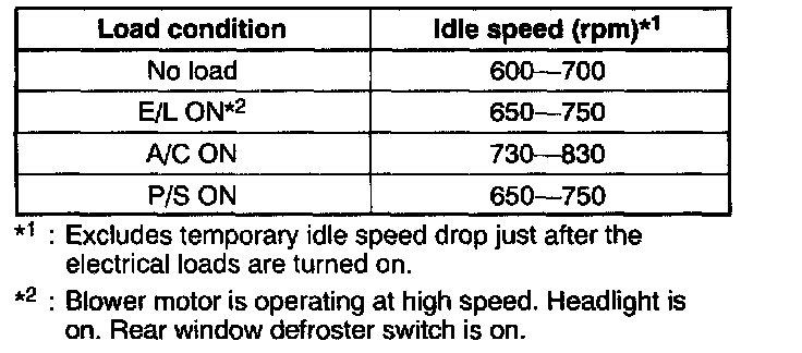 ^ If not as specified with all load conditions, inspect the IAC valve.