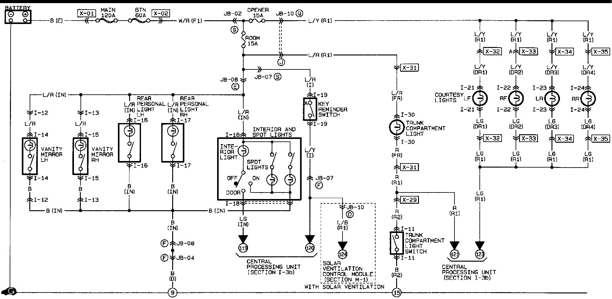 Vanity Mirror, Interior Light, Courtesy Lights, Rear Personal Lights, S Pot Lights, Trunk Compartment Light: