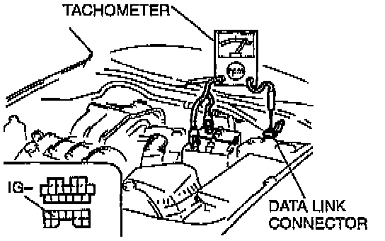 2. Connect a tachometer to the data link connector terminal IG-.